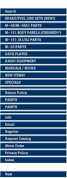 We will always strive to provide the best quality products, the most helpful advice and the quickest service possible. We hope you allow us the opportunity to be your jeep or military truck parts and paint supplier.